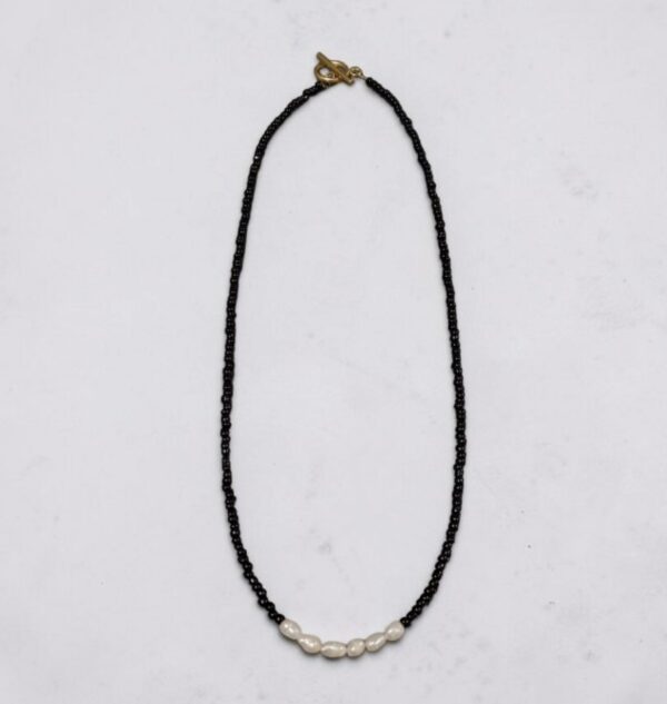 Χειροποίητο κολιέ με μαύρες χάντρες και περλιτσες λεπτό για καθημερινές εμφανίσεις