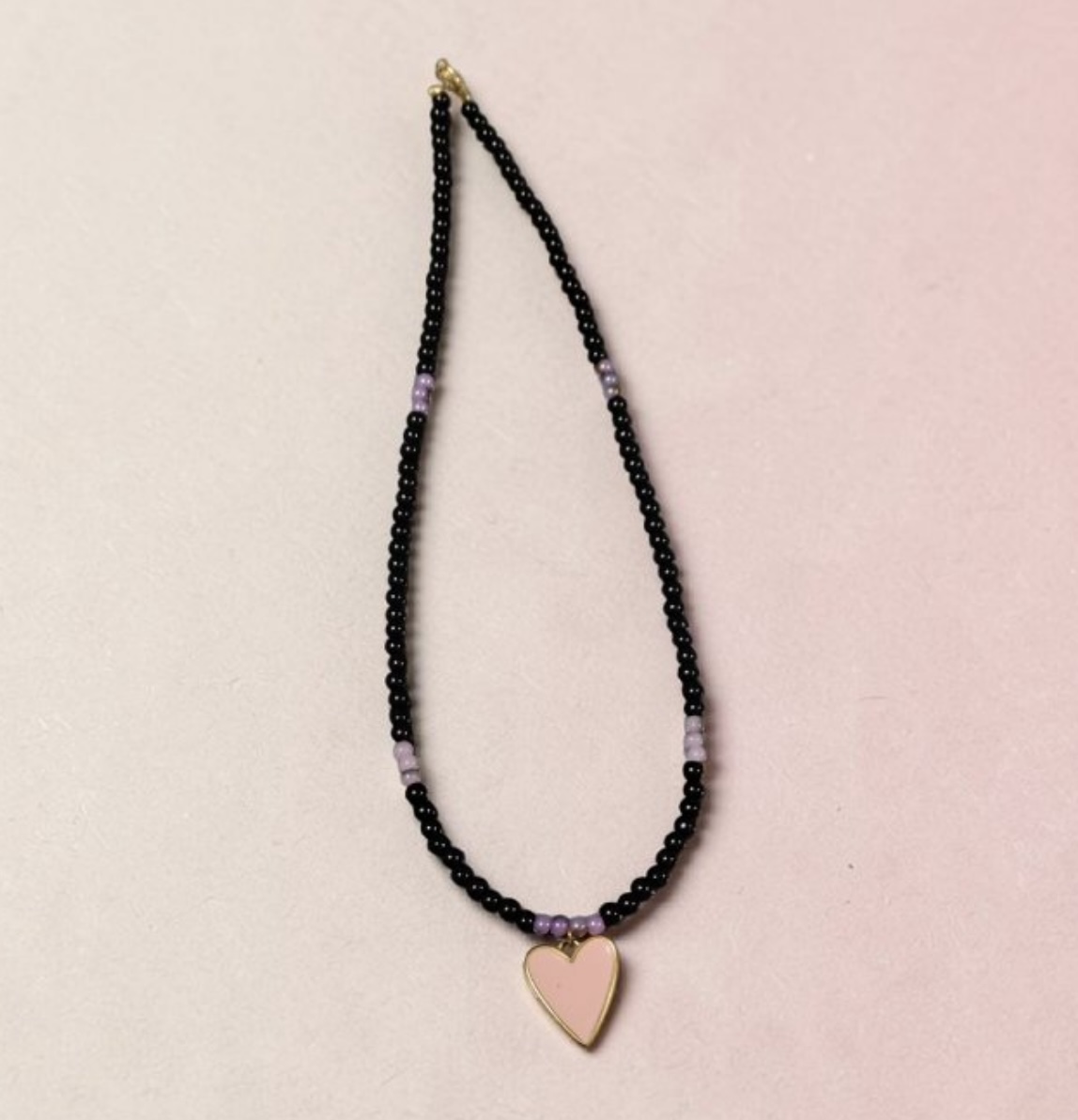 Κολιέ από χάντρες με ροζ στοιχείο από ανοξείδωτο ατσάλι με μωβ λεπτομέρειες