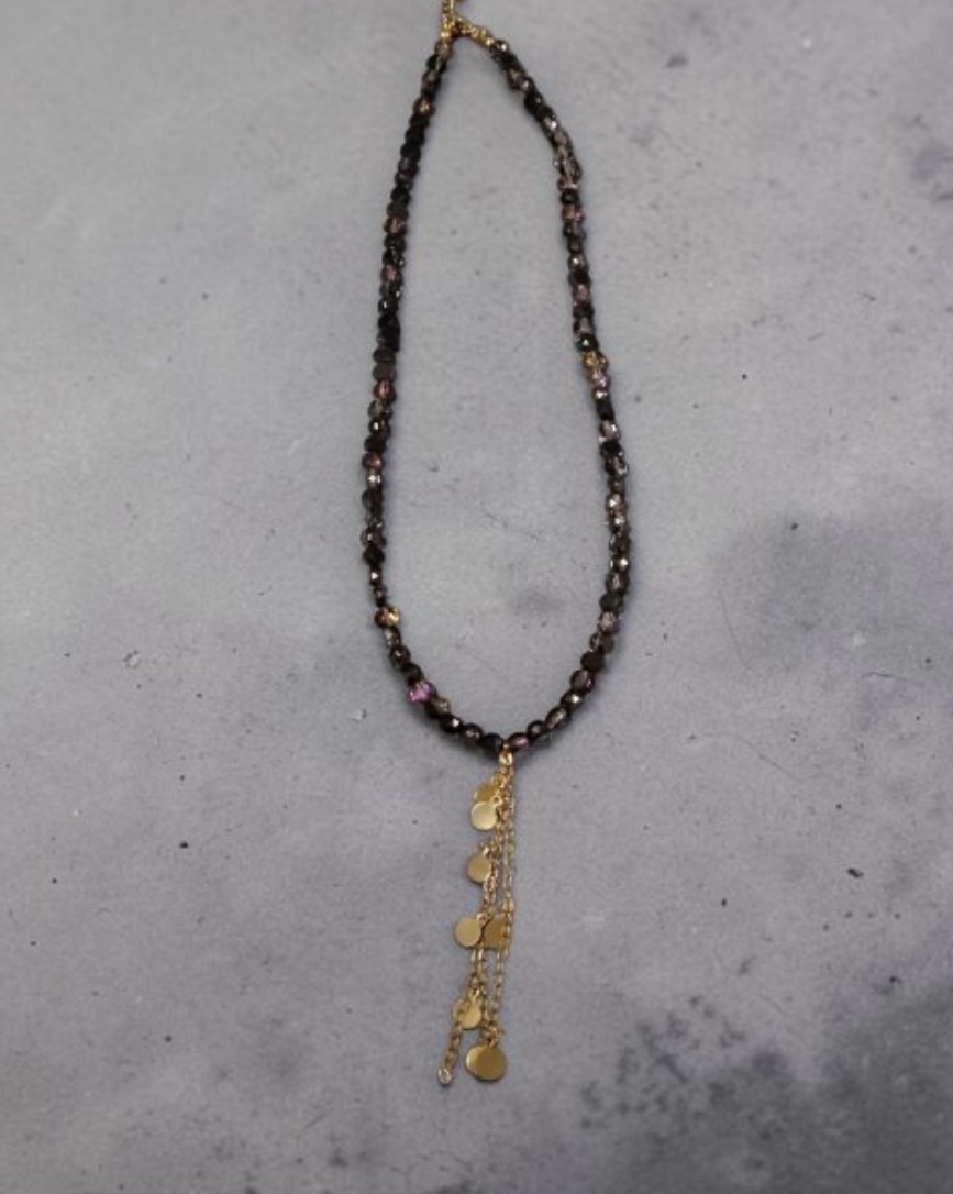 Χειροποίητο κολιέ με γυάλινες χάντρες και αλυσίδα από ανοξείδωτο ατσάλι