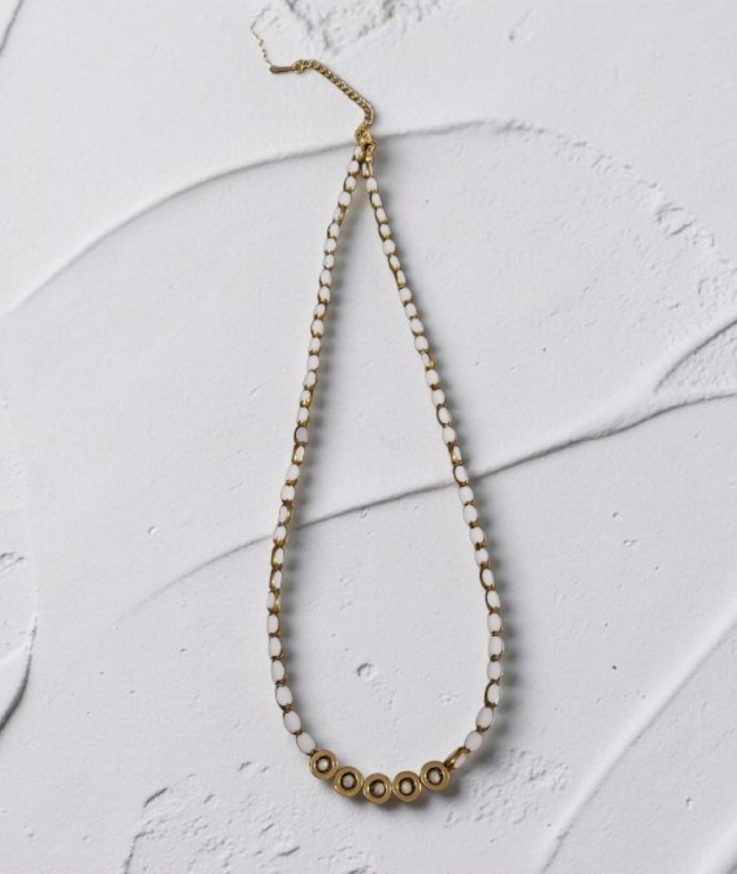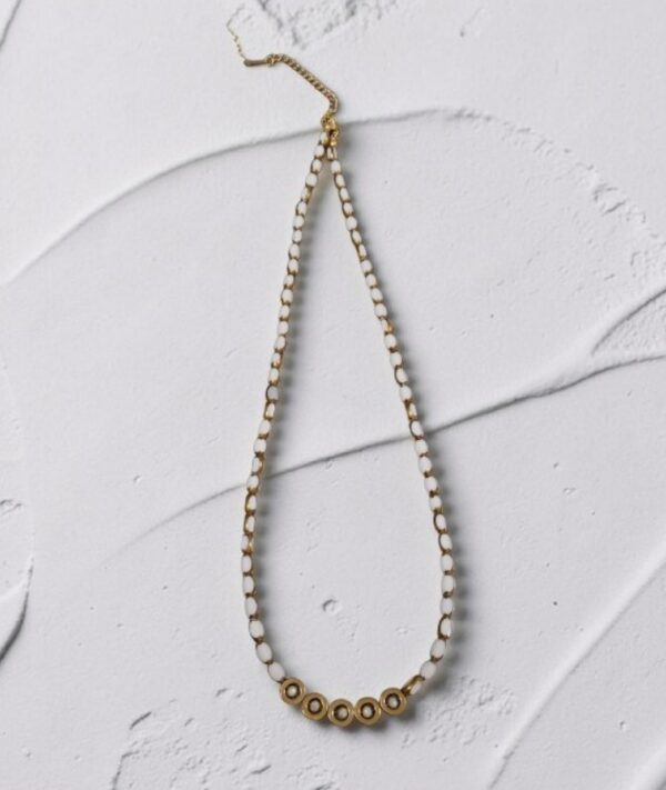Χειροποίητο κόσμημα σε λευκό χρώμα με δίχρωμες χάντρες σε χρώμα χρυσό και λευκό